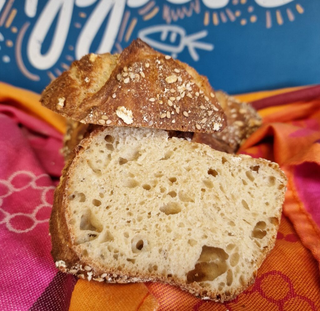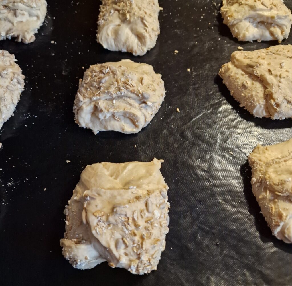 Der Teig besteht aus Halbweissmehl, Einkorn und etwas Manitobamehl. Die Kombination ergibt Brötchen mit einem kräftigem, nussigem Aroma und gleichzeitig einer angenehm weichen, saftigen Krume. Das Besondere an diesem Rezept ist, dass der Teig am Vorabend angesetzt wird. Mit wenig Hefe, kalter Milch und kaltem Wasser darf er über Nacht ruhen. In dieser Zeit entwickelt sich ein wunderbares Aroma. Morgens wird er einfach nur auf einer mit Saaten und Flocken bestreuten Arbeitsfläche abgestochen, in Form gebracht und auf das vorbereitete Backblech gelegt. Nach etwa 25 bis 30 Minuten Backzeit sind sie aussen schön knusprig und innen wunderbar weich. Frisch aus dem Ofen, noch lauwarm, sind sie pur oder mit etwas Butter ein echter Genuss. Perfekt für einen gemütlichen Sonntagsbrunch.