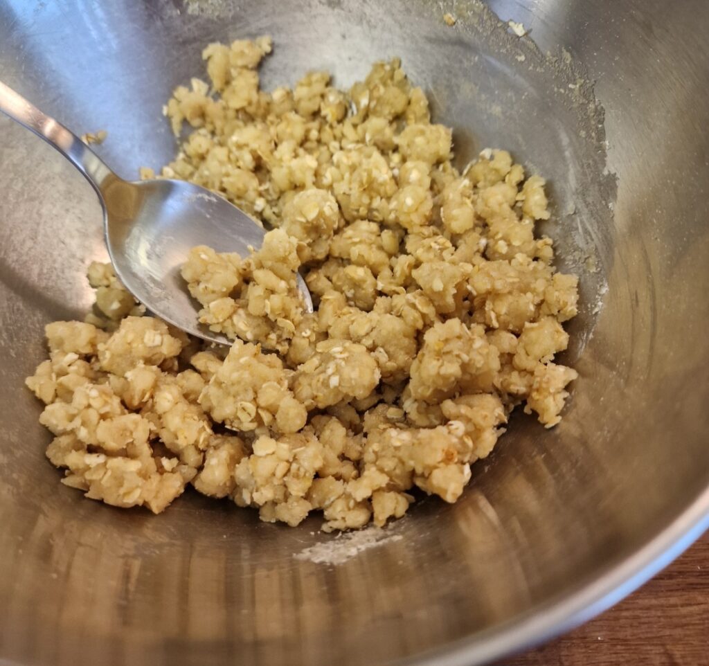 und die Streusel grosszügig darüber geben.