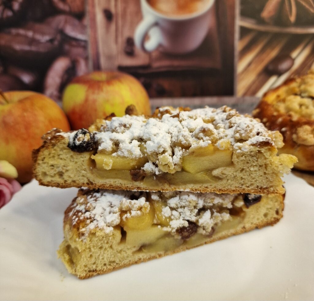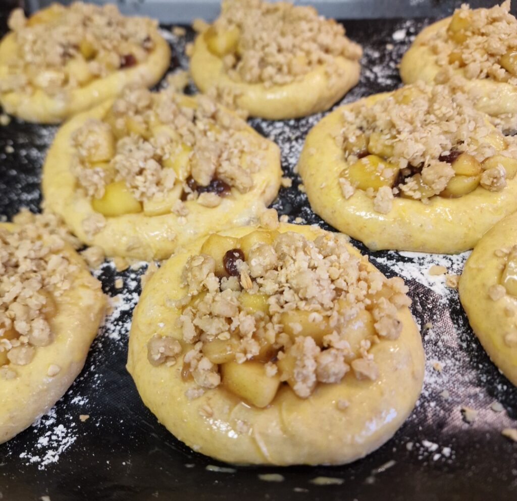 Die Mulden mit der Apfel Rosinen Füllung gefüllt und grosszügig die Streusel darüber verteilt. Auch wenn ich dachte ich hätte die Kolatschen mit genügend Abstand aufs Blech getan so berührten sie sich doch und sind etwas zusammengebacken. Schon während dem Backen duftete es so köstlich und das waren sie dann auch nach dem Backen. Liebe Zorra, einmal mehr danke für die tolle Rezept Wahl. Ganz am Ende verlinke ich euch noch alle die mitgebacken haben.