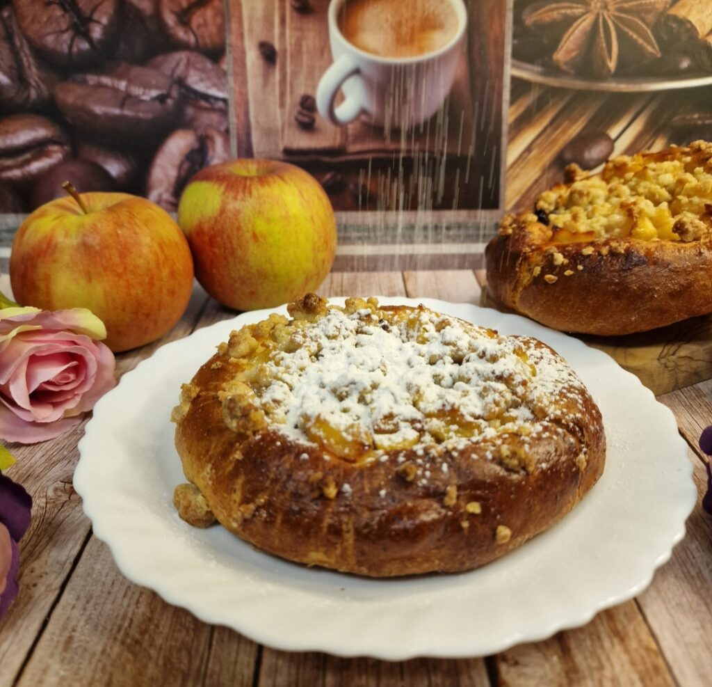 Am vergangenen Wochenende haben wir wieder Synchron gebacken und Zorra hat sich einmal mehr etwas ganz tolles ausgesucht. Wir haben Kolatschen nach dem Rezept von Wordloaf gebacken. Jetzt geht es euch sicher wie mir und ihr könnt euch darunter noch nichts vorstellen. Kolatschen sind ein traditionelles süsses Gebäck aus Tschechien. Sie bestehen aus einem weichen Hefeteig und werden als kleine runde Küchlein gebacken. In der Mitte befindet sich eine Füllung, zum Beispiel aus Äpfeln. Die Apfelfüllung wird meist aus fein geschnittenen oder geriebenen Äpfeln zubereitet und mit Zucker und etwas Zimt abgeschmeckt. Sie werden noch mit Streuseln oder einem Butterrand verfeinert und warm oder kalt gegessen.