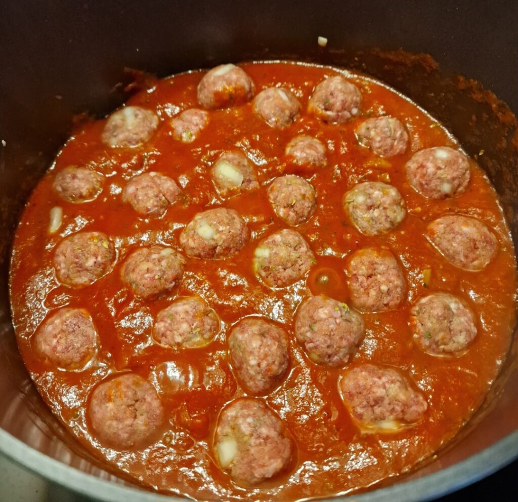 Es gibt viele verschiedene Sorten Hackfleisch, doch wir greifen meistens zu Rindshackfleisch, weil es uns einfach am besten schmeckt und ein kräftiges Aroma hat. In vielen Rezepten werden die Hackbällchen zunächst in der Pfanne angebraten, bevor sie in die Sauce kommen. Ich bereite sie anders zu und gebe sie roh direkt in die Tomatensauce. Dort garen sie ganz sanft, bleiben besonders saftig und geben gleichzeitig ihr Aroma an die Sauce ab. Für mich ist das die einfachste und zugleich leckerste Variante.