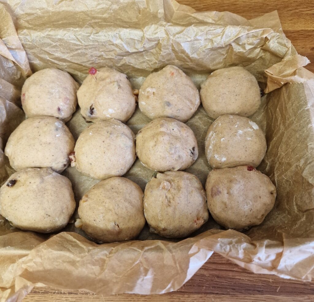 Für das 88. Synchronbacken hat Zorra wieder einmal ein wunderbares Thema ausgesucht. Da Ostern schon vor der Tür steht, fiel die Wahl diesmal auf Hot Cross Buns nach einem Rezept von Chainbaker. Dieses klassische Gebäck stammt aus dem Vereinigten Königreich und gehört dort traditionell zur Osterzeit einfach dazu. Hot Cross Buns sind süsse, aromatisch gewürzte Hefebrötchen, die besonders rund um den Karfreitag gebacken und gegessen werden. Ihr typisches Merkmal ist das Kreuz auf der Oberfläche, das entweder aus einem Teigstreifen oder aus einer Paste besteht und dem Gebäck nicht nur optisch, sondern auch symbolisch eine besondere Bedeutung verleiht. In meiner Variante habe ich die Paste noch mit gemahlenem Ingwer aromatisiert.